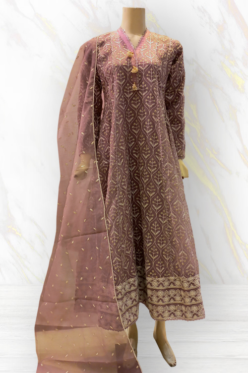 Heavily Embroidered Khaadi Net 3PC Purple Dress HNC-23-210