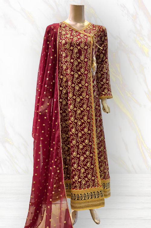 Heavily Embroidered Chiffon 3PC Maroon Dress HNC-23-201